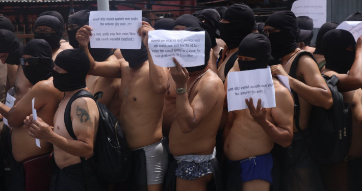 काठमाडौँ । काठमाडौँको माइतीघर मण्डलामा सहकारी पीडितहरूले आइतबार आज अर्धनग्न भई प्रदर्शन गरेका छन् ।